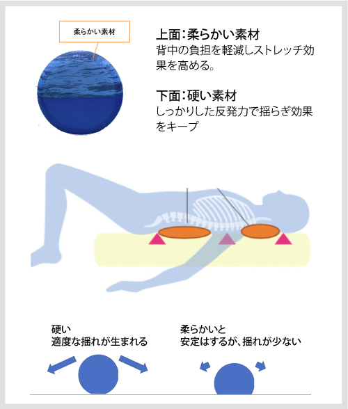 - 背中の負担にならない程よいクッション性で背筋をストレッチ